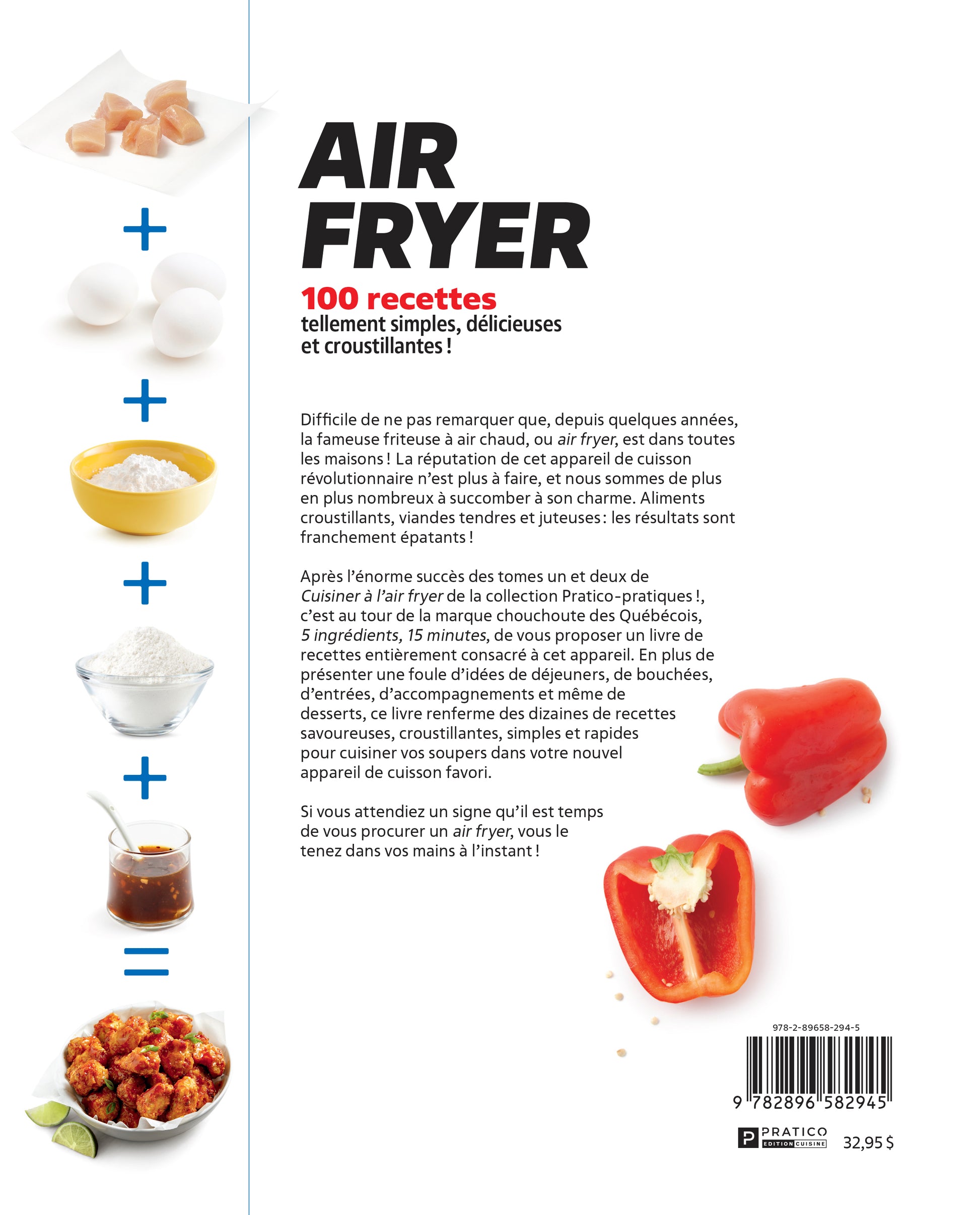 Après l’énorme succès des tomes un et deux de Cuisiner à l’air fryer de la collection Pratico-pratiques !, c’est au tour de la marque chouchoute des Québécois, 5 ingrédients, 15 minutes, de vous proposer un livre de recettes entièrement consacré à cet appareil. En plus de présenter une foule d’idées de déjeuners, de bouchées, d’entrées, d’accompagnements et même de desserts, ce livre renferme des dizaines de recettes savoureuses, croustillantes, simples et rapides pour cuisiner vos soupers dans votre nouvel appareil de cuisson favori.