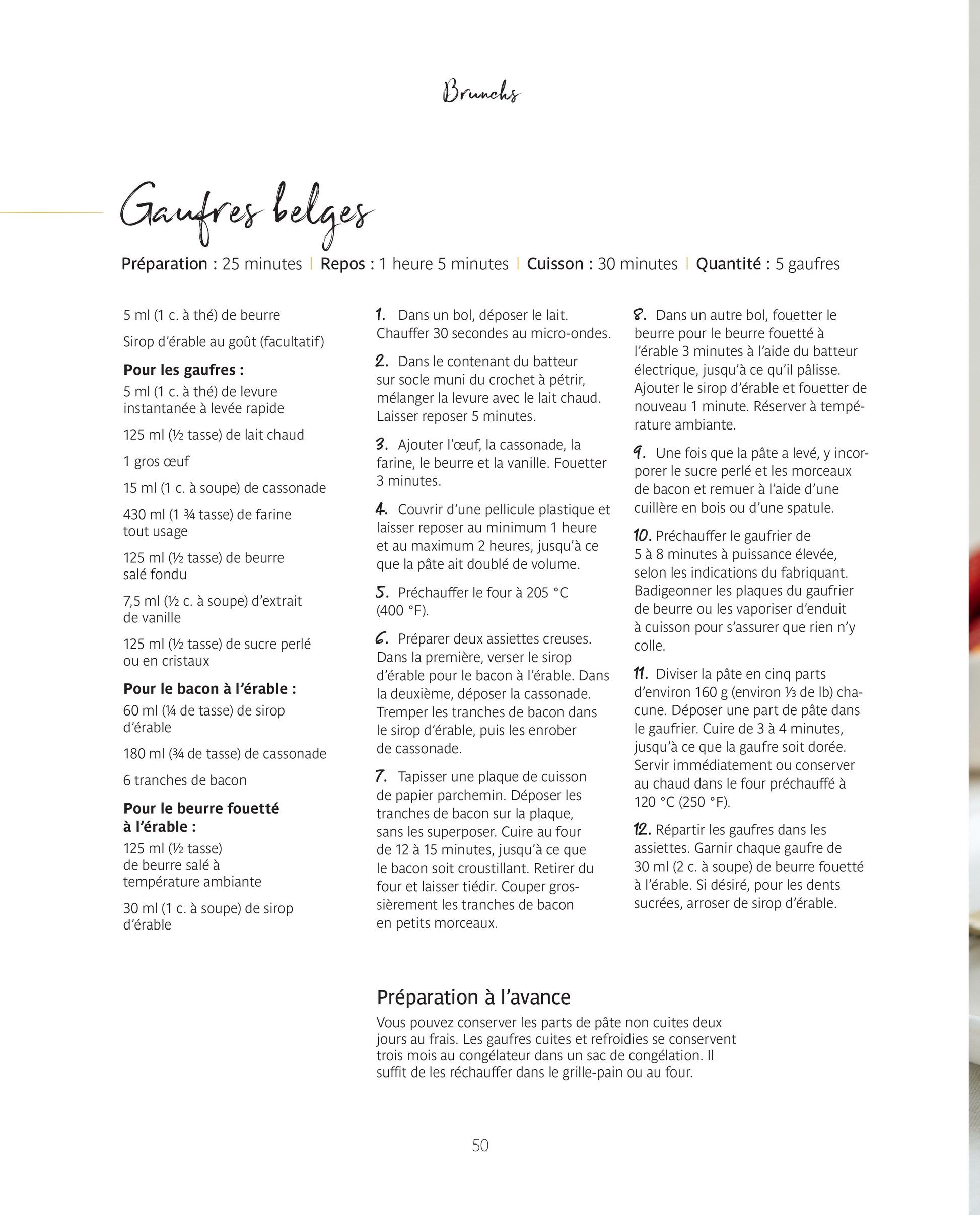 Au menu : des sections entières consacrées aux brunchs salés ou sucrés, aux entrées et bouchées irrésistibles, aux accompagnements – incluant des suggestions d’accords avec les plats principaux –, aux desserts thématiques, aux pizzas, pâtes et sandwiches gourmands, aux soupes et salades, aux mets à base de viande ou végé… bref, vous trouverez de tout pour plaire à tous les goûts et faire la part belle à la saison nouvelle! En prime, j’ai créé des repas pensés pour souligner les grandes célébrations associées à cette saison effervescente, notamment Pâques ou le temps des sucres.