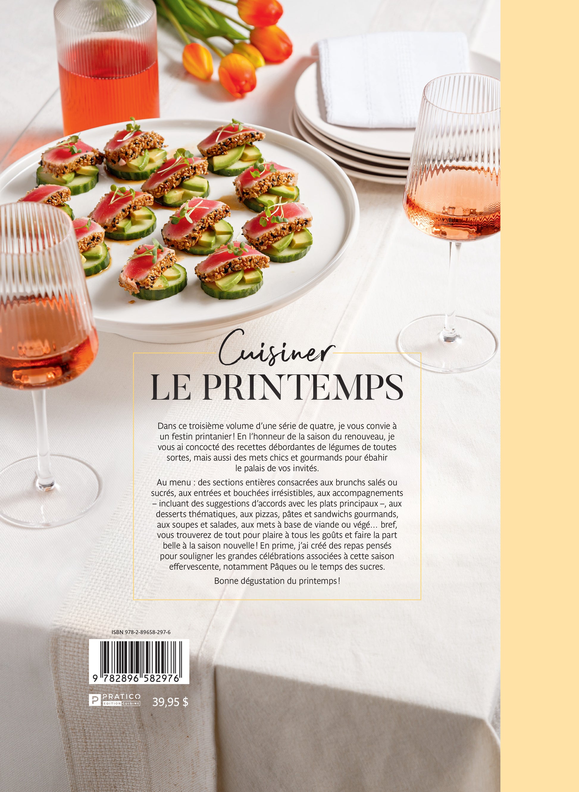 Dans ce troisième volume d’une série de quatre, je vous convie à un festin printanier! En l’honneur de la saison du renouveau, je vous ai concocté des recettes débordantes de légumes de toutes sortes, mais aussi de mets chics et gourmands pour ébahir le palais de vos invités.
