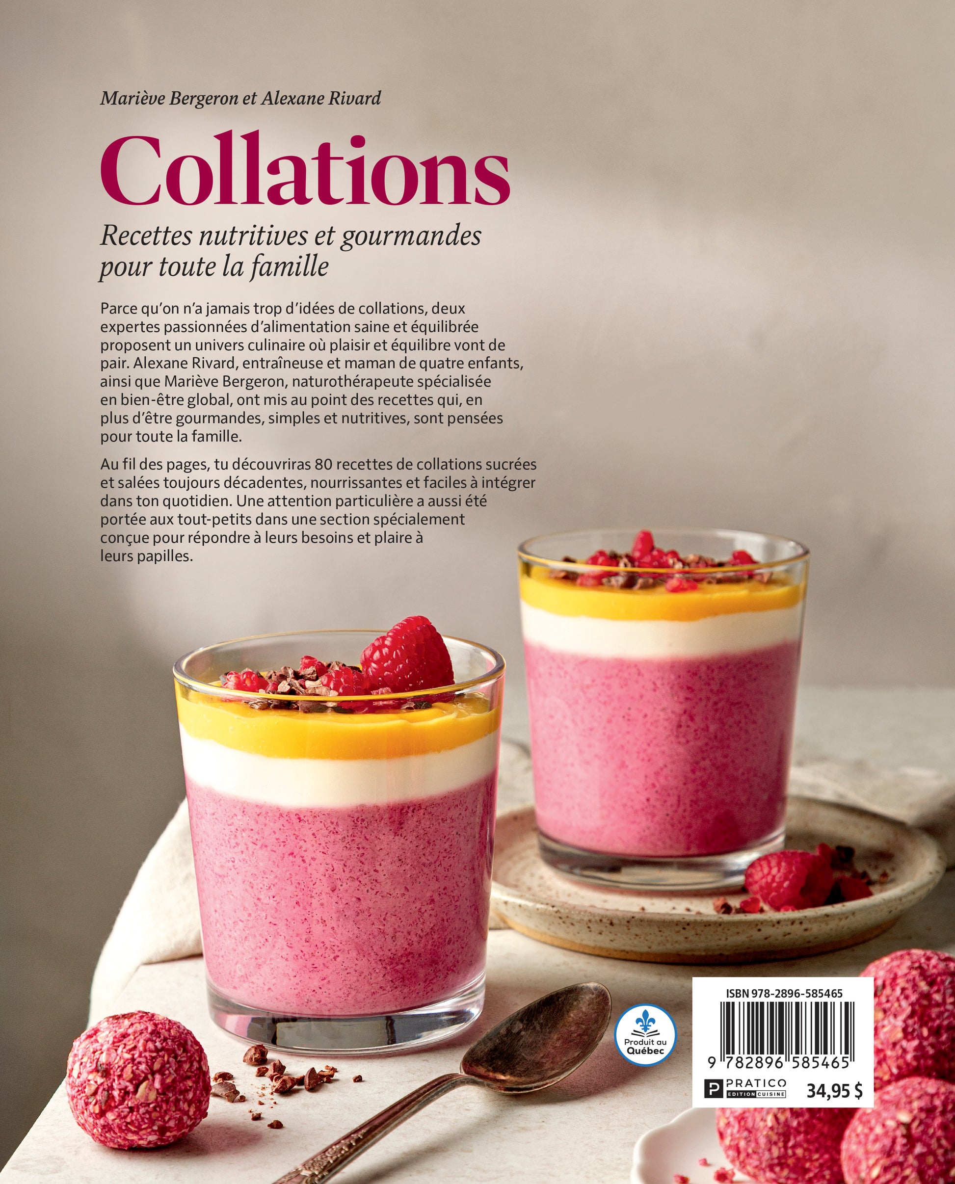 Parce qu’on n’a jamais trop d’idées de collations, deux expertes passionnées d’alimentation saine et équilibrée proposent un univers culinaire où plaisir et équilibre vont de pair. Alexane Rivard, entraîneuse et maman de quatre enfants, ainsi que Mariève Bergeron, naturothérapeute spécialisée en bien-être global, ont mis au point des recettes qui, en plus d’être gourmandes, simples et nutritives, sont pensées pour toute la famille.