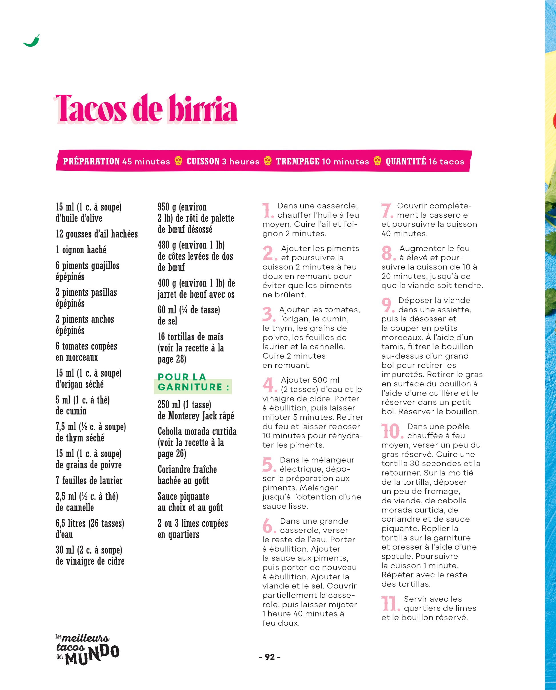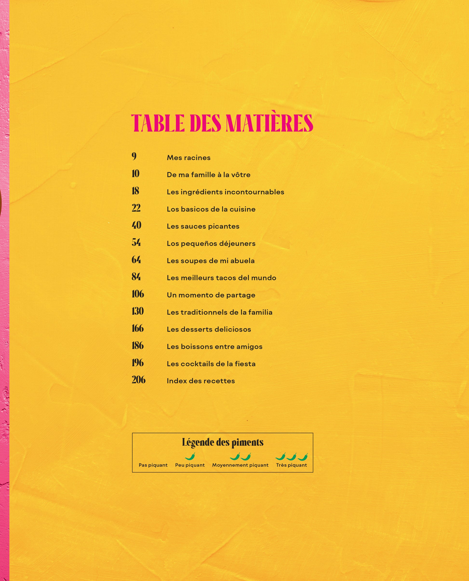 À travers son histoire riche et fascinante, le jeune restaurateur nous transmet sa passion pour la cuisine et nous démontre la place qu’elle occupe dans sa vie. Tacos, bien sûr, mais également enchiladas, tamales, mole, pastel tres leches, et plus encore : du brunch au dessert, ce sont plus de 80 recettes savoureuses typiquement mexicaines qui se trouvent dans ce livre et qui feront voyager les papilles à chaque bouchée.