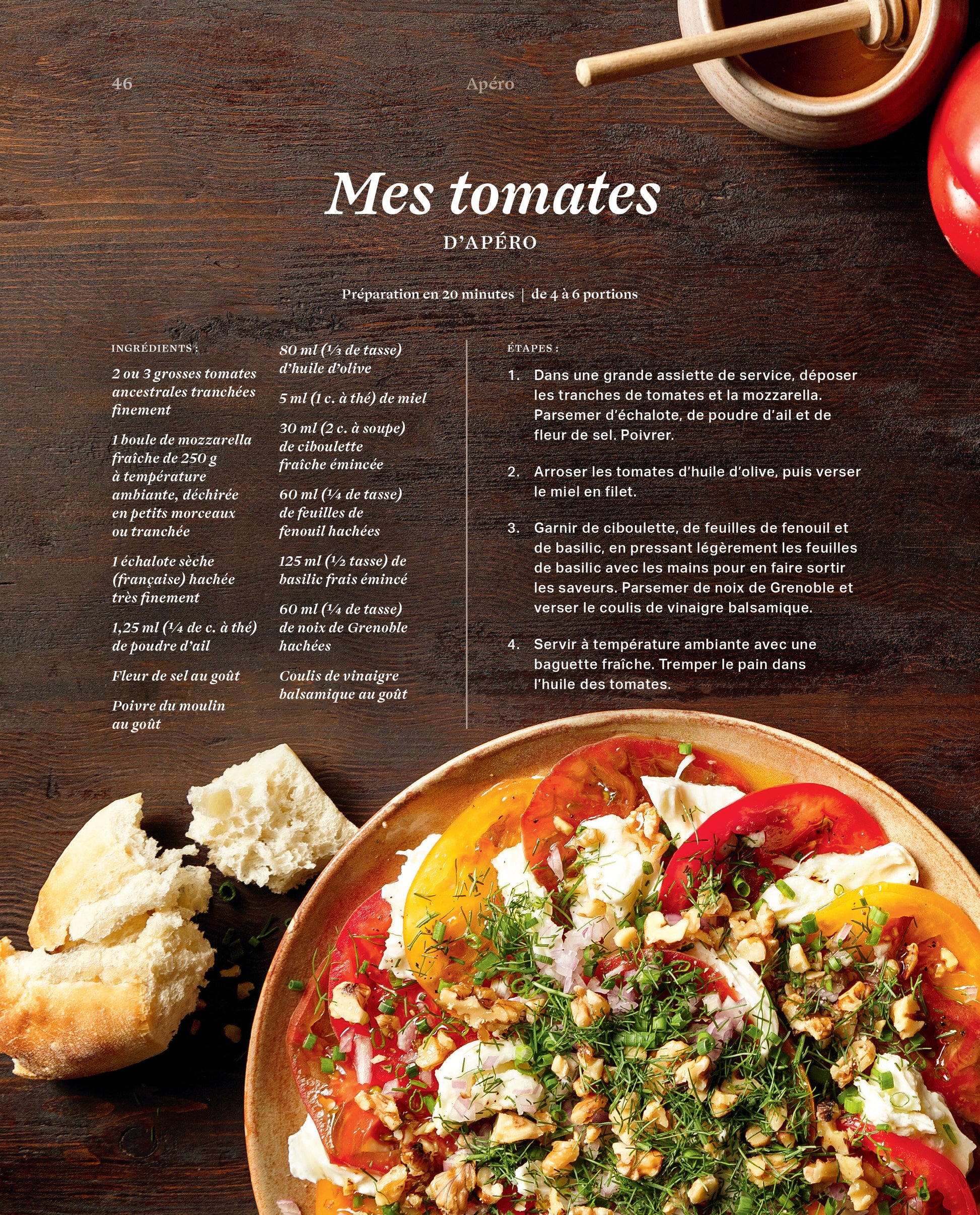 Plus qu’un livre de recettes, ce tome vous fera parcourir mon histoire culinaire familiale. L’influence de mes parents, de mes grands-parents et de mes arrière-grands-parents vous séduira de page en page, étant donné le plaisir sans fin que nous avions à partager des agapes simples, savoureuses et festives. Les recettes choisies m’évoquent des moments de pur bonheur, des moments vécus autour d’une table bien garnie au son d’une musique d’ambiance enjolivée par les rires et les conversations.