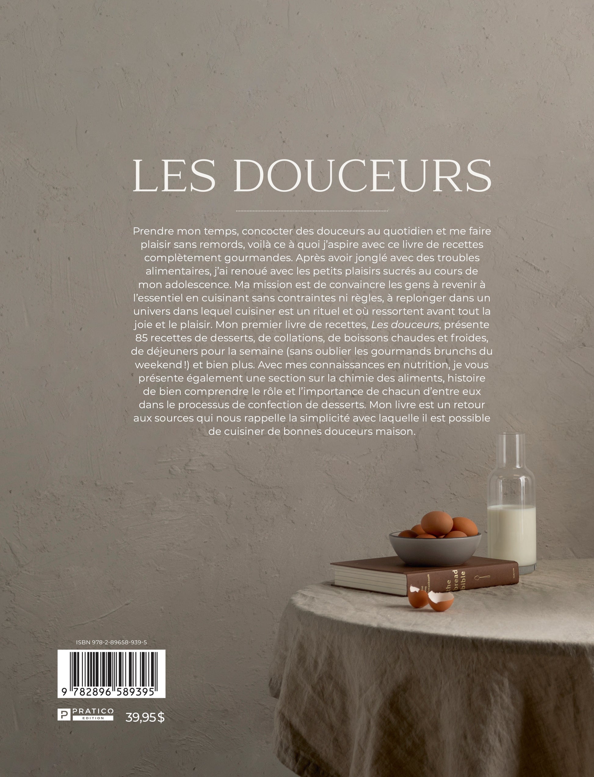 Mon premier livre de recettes, Les douceurs, présente 85 recettes de desserts, de collations, de boissons chaudes et froides, de déjeuners pour la semaine (sans oublier les gourmands brunchs du weekend!) et bien plus. Avec mes connaissances en nutrition, je vous présente également une section sur la chimie des aliments, histoire de bien comprendre le rôle et l’importance de chacun d’entre eux dans le processus de confection de desserts. Mon livre est un retour aux sources qui nous rappelle la simplicité avec laquelle il est possible de cuisiner de bonnes douceurs maison.