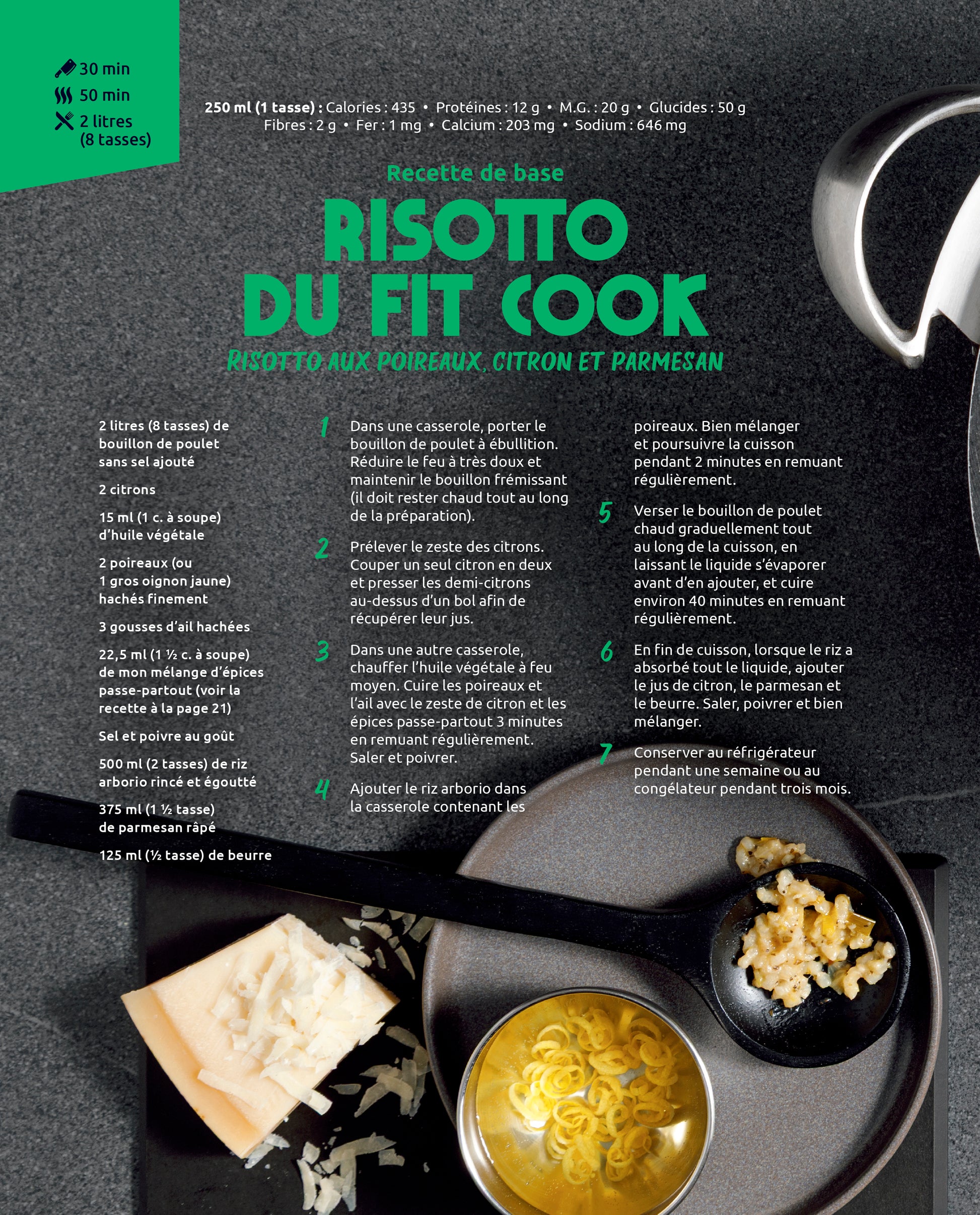 Fidèle à sa signature colorée et unique, il transforme les classiques du midi (plats chauds de toutes sortes, soupes, salades, sandwichs, et tellement plus !) en repas vibrants de saveurs et nutritifs parfaits pour le lunch. Tu risques d’adorer la section 1 base, 3 déclinaisons : le Fit Cook te propose quelques préparations à cuisiner en batch avec lesquelles tu pourras réaliser différents lunchs originaux!