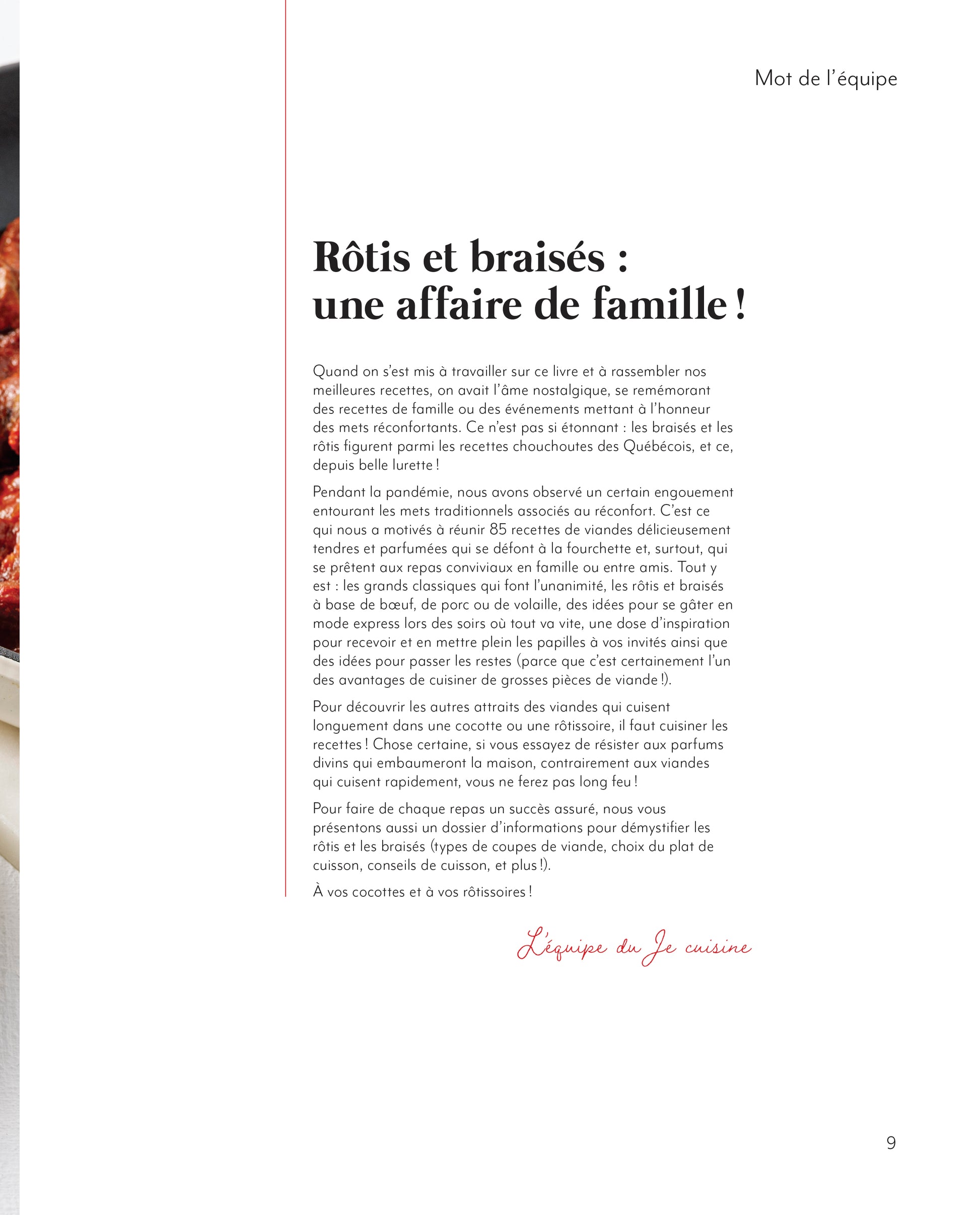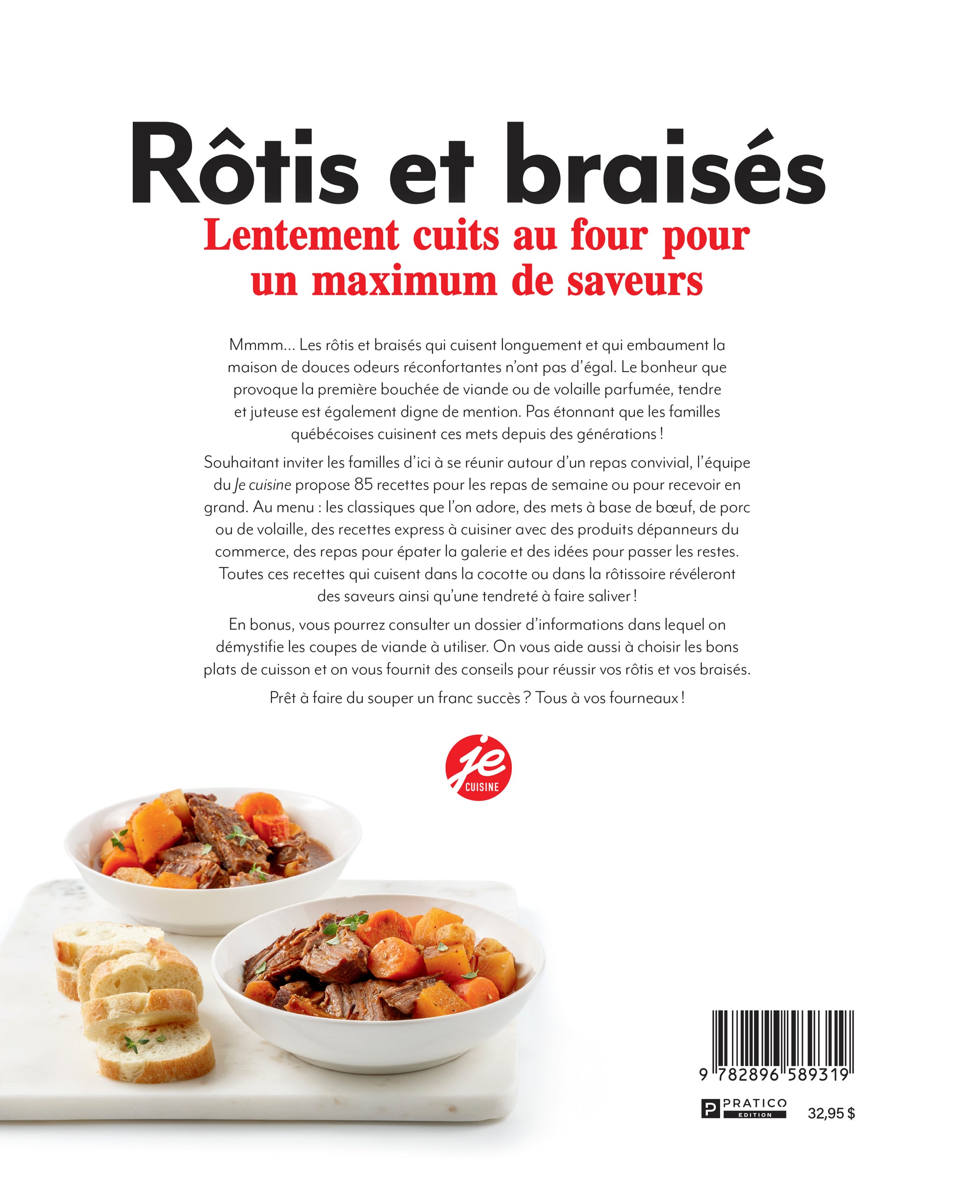 Souhaitant inviter les familles d’ici à se réunir autour d’un repas convivial, l’équipe du je cuisine propose 85 recettes pour les repas de semaine ou pour recevoir en grand. Au menu : les classiques que l’on adore, des mets à base de bœuf, de porc ou de volaille, des recettes express à cuisiner avec des produits dépanneurs du commerce, des repas pour épater la galerie et des idées pour passer les restes. Toutes ces recettes qui cuisent dans la cocotte ou dans la rôtissoire révèleront des saveurs ainsi qu’une tendreté à faire saliver !